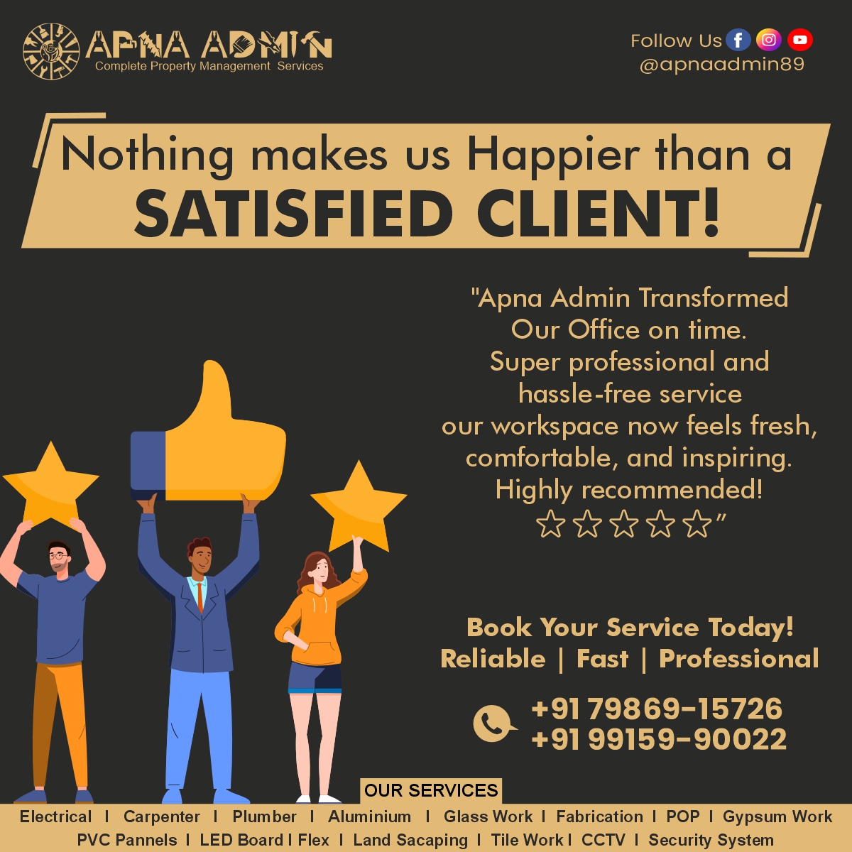 Apna Admin came to us with a need to increase their brand's online presence and boost their social media engagement. Their accounts were struggling to attract a new audience and lacked a clear content strategy. They were looking for a strategic partner to build a thriving community and deliver a measurable return on their investment.